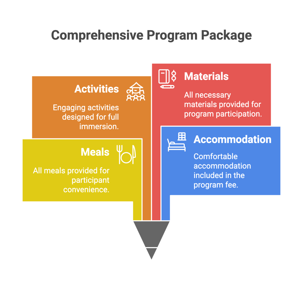 - $1500 Residential program. All meals, accommodation, program activities and materials included.